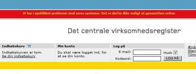 Ved en tidligere lejlighed i slutningen af 2012 var cvr.dk også i problemer.
