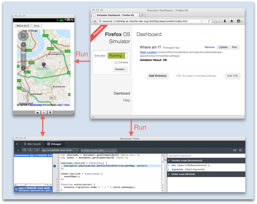 "Firefox OS-simulatoren er et værktøj, der lader lader dig teste og debugge din Firefox OS app på desktoppen," lyder beskrivelsen.