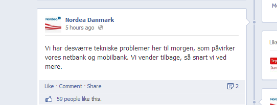 Nordeas kunder havde mandag morgen ikke mulighed for at bruge virksomhedens netbank - hverken på Nordeas hjemmeside eller via mobilapplikationer.