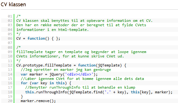 Det gjorde Rune Grønkjær for nogle år siden, hvor han lavede et digitalt cv i javascript. (Se skærmbillede her på siden). Et jQuery-plugin skriver cv'et ud i en HTML-template. Ansøgningen ligger stadig på hans blog.