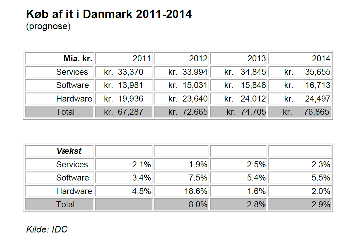 Mens software-produktionen vokser, så er udviklingen mere afdæmpet, når det gælder det samlede danske it-marked.