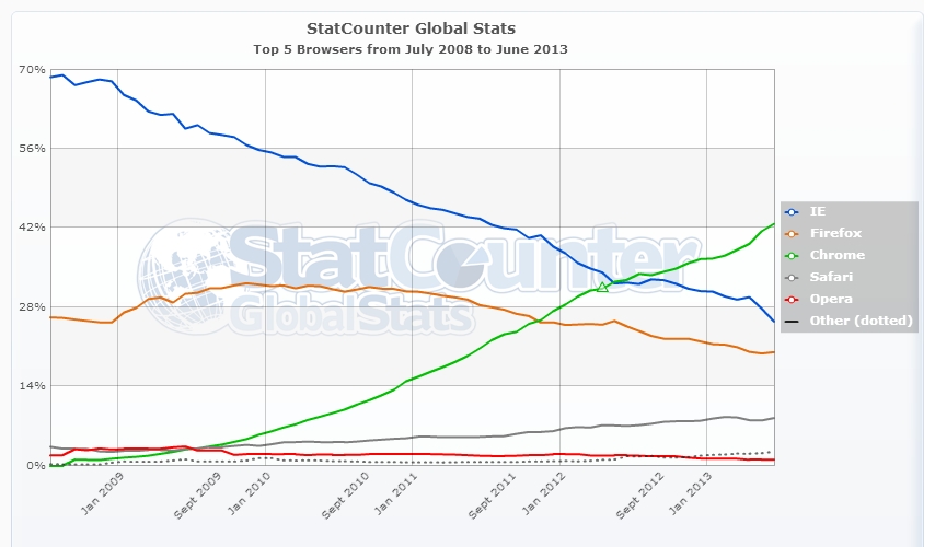 Nedenstående graf fra StatCounter viser den globale browserudvikling i de seneste fem år (klik for større billede):