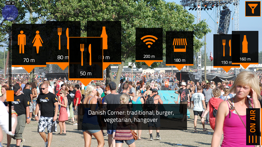 Det betyder eksempelvis, at en bruger kan hæve sin smartphone, pege den mod Orange Scene og få backstage-billeder, koncertanmeldelser og det kommende spilleprogram på skærmen.