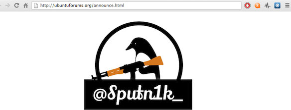 Hackeren, der stak af med alle informationerne, erstattede den normale hjemmeside med et billede, som samtidig henviste til hackerens Twitter-konto, "Sputn1k_".