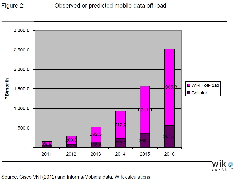 For det første er Wi-Fi til stede i op imod 70 procent af hjemmene i flere EU-lande, og samtidig er Wi-Fi blevet en standard-teknologi i nyere smartphones, hvilket betyder, at der finder et betydeligt offload sted allerede i dag.