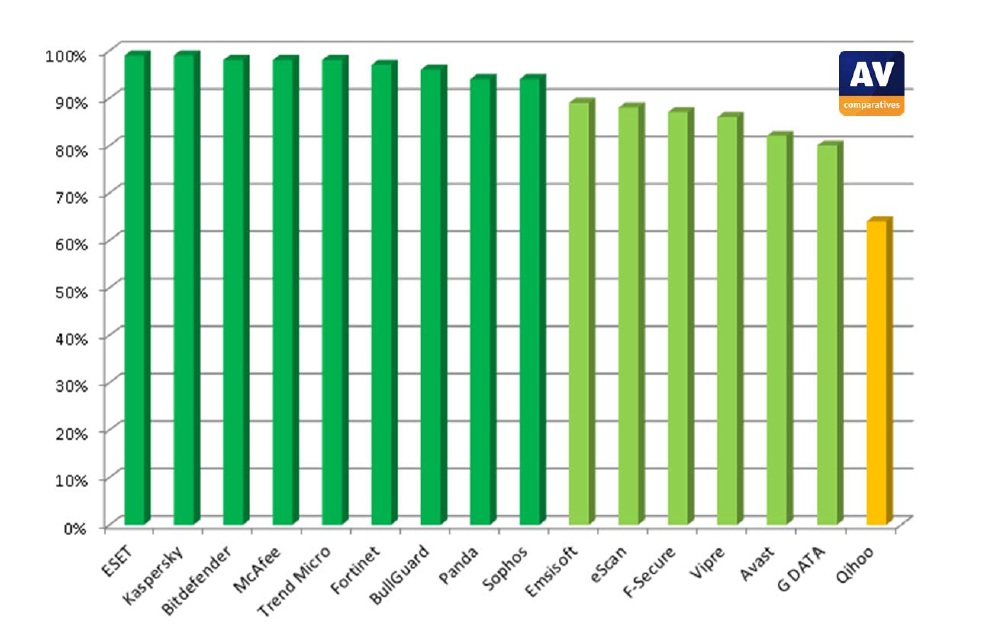 Knap så skarp var Qihoo, der blev den samlede bundskraber med en genkendelsesprocent på blot 64.