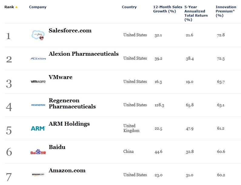 Tre ud af de fem første er Salesforce.com, virtualiserings-firmaet VMware, chip-fabrikanten ARM.