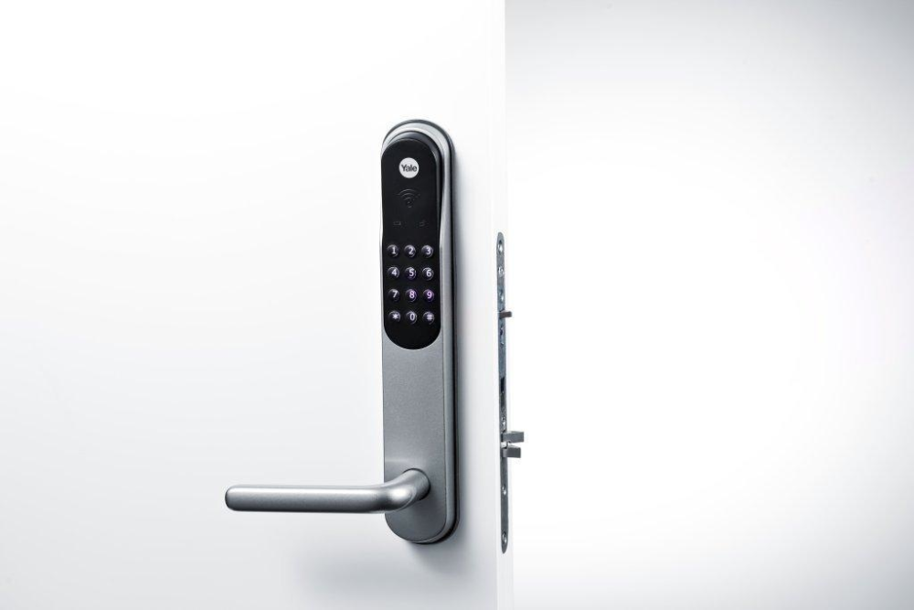 Døren kan blandt andet låses op via en app til din smartphone, men på den fysiske låseenhed er det traditionelle nøglehul erstattet med et numerisk tastatur, som også kan bruges, hvis eksempelvis telefonen er løbet tør for strøm.