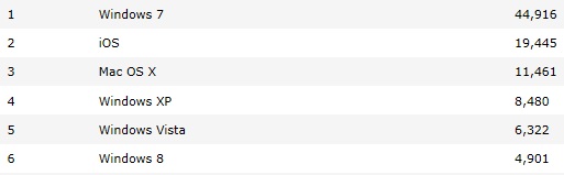 Siden lanceringsdatoen har styresystemet haltet efter en af sine forgængere, Vista, der trods sin svage position har formået at holde version 8 bag sig.