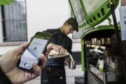 Forbrugerne foretager betalingen med den MobilePay-app, som de allerede har installeret på deres telefoner, og hver enkelt butik er udstyret med et særligt MobilePay-nummer, som skal indtastes, når betalingen skal foretages.