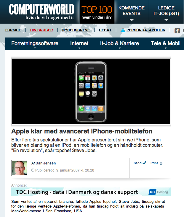 "Hvad er det lige, der er så fantastisk ved Apples iPhone, der tilsyneladende kun har de mest basale features og umiddelbart ser lidt pudsig ud uden taster. Det er da vist de færreste, der gider staveplade sig igennem en e-mail."