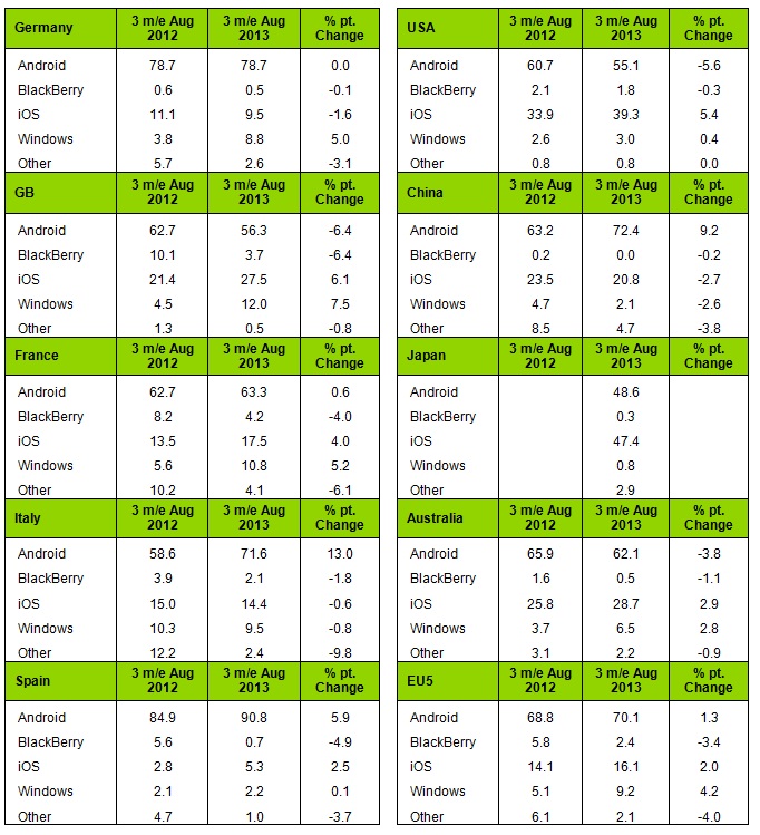 Windows Phone er særlig populær i Frankrig, hvor markedsandelen er på 12 procent. Herefter følger England med 10,8 procent.