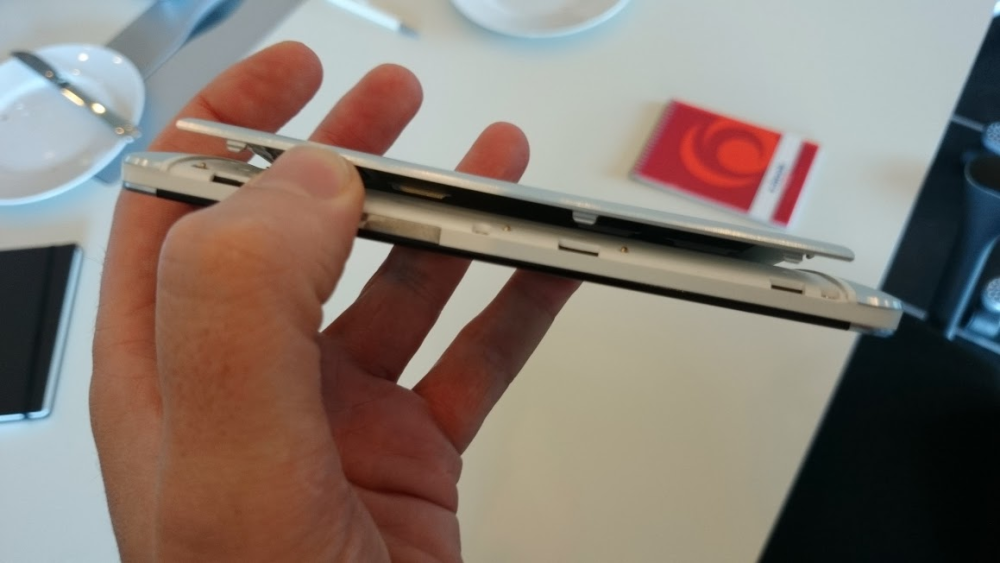Ved at åbne ryggen kan der fyldes to sim-kort i mobilen, og der er faktisk også blevet plads til et MicroSD-kort, hvis man manuelt vil udvide lagerkapaciteten, som til at begynde med er 32 gigabyte.