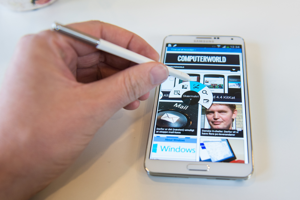 I bunden af Galaxy Note 3 har Samsung gjort plads til en S Pen, som kan trækkes frem og bruges til at betjene skærmen. Det fungerer glimrende.