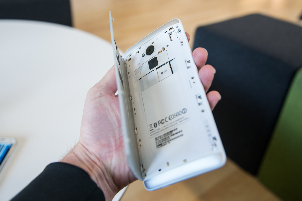 Samtidig er det blevet muligt at fjerne bagbeklædningen, hvilket ikke var tilfældet på HTC One. Det giver adgang til indsættelse af sim-kort og MicroSD-hukommelseskort, som også var fraværende på den første One.