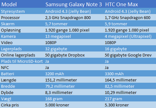 Men hvilken mobil er bedst: Samsung Galaxy Note 3 eller HTC One Max?