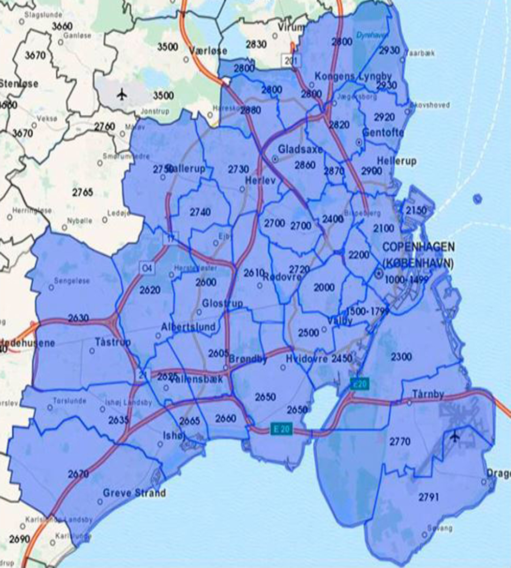 Ordningen gælder for kunder i Københavnsområdet, der bor indenfor en betalingsring mellem Kongens Lyngby, Ballerup, Taastrup og Greve (se kortet). Post Danmark lover, at varer der er bestilt sidst på eftermiddagen bliver leveret på kundens bopæl til kunden samme dag inden klokken 22.