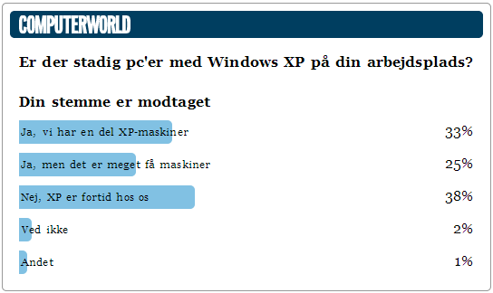 Computerworld spurgte ved samme lejlighed læserne: "Er der stadig pc'er med Windows XP på din arbejdsplads?"