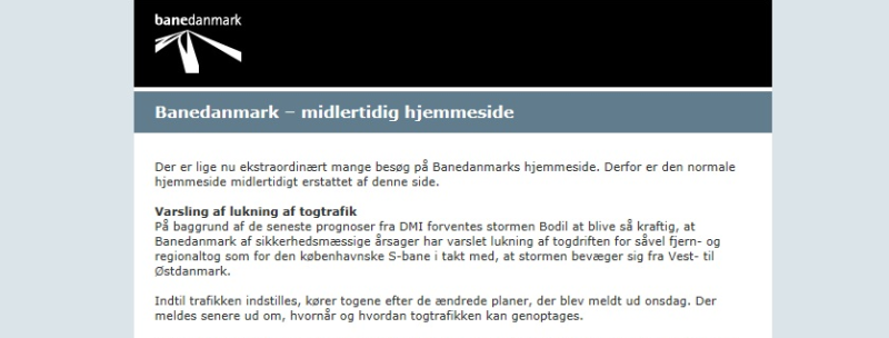 Det skyldes ekstraordinært mange besøg på Banedanmarks hjemmeside.
