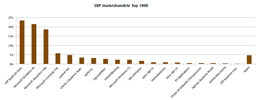 Konklusionen er ikke overraskende, at SAP Business Suite og Microsoft Dynamics AX fylder mest blandt disse virksomheder.