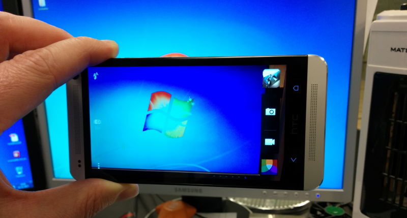 Tag din mobil frem, tænd for kameraet. Peg mobilen mod tastaturet og før den hurtigt op foran displayet.