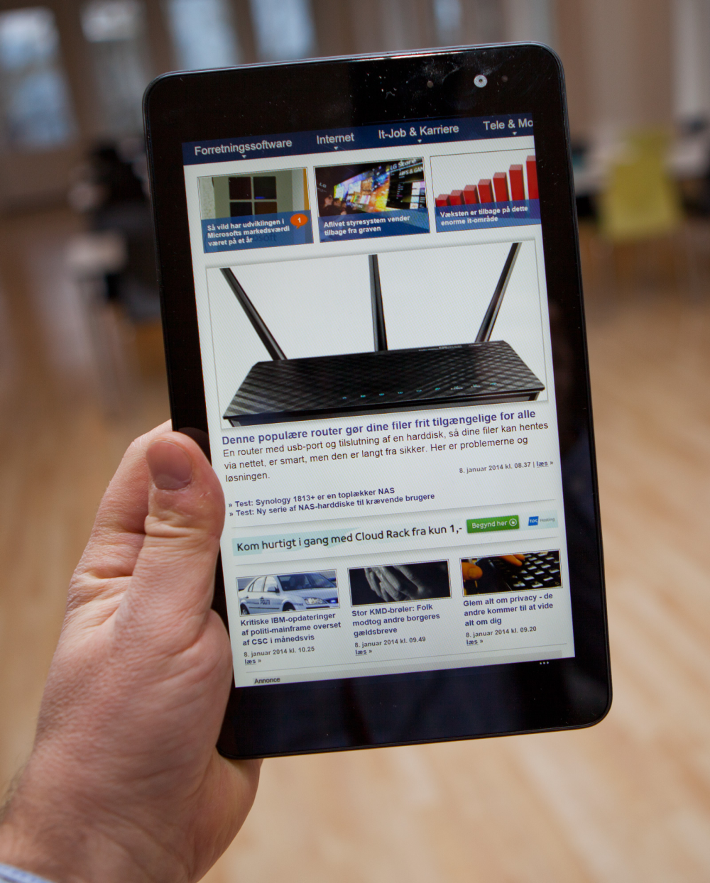 Skærmen er meget klar og letlæst, men er desværre på kun 1.280 x 800 pixels. Det er til at leve med og er med til holde prisen nede på de 299 dollar, som den koster i USA, men det er samtidig et stykke under de 1.920 x 1.200 pixels, som Googles Nexus 7 (2013-versionen) kommer med.