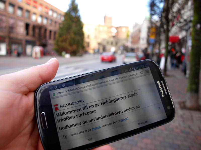 Efter lidt spadseren frem og tilbage i området står det helt klart, at kommunens Wi-Fi er en meget begrænset oplevelse, som svarer meget godt til det, man finder på en cafe ... og som der i øvrigt er masser af i Helsingborg.
