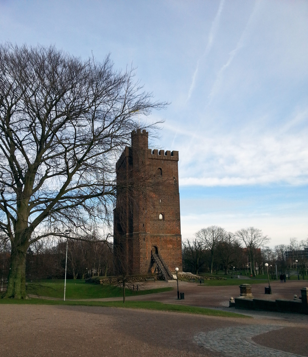 Ikke engang ved det middelalderlige borgtårn Kärnan, som er byens vartegn, og som ligger højt hævet over Stortorget, er der forbindelse.