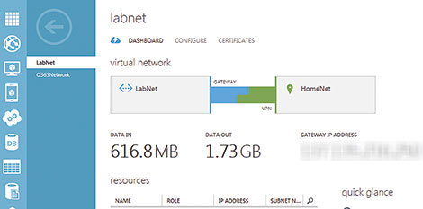 Derefter oprettede vi en cloud-baseret IAAS-løsning i Microsoft Azure og brugte en Cisco 5505-router til at forbinde vores lokale netværk til skyen. Vi eksperimenterede med at oprette, ændre og fjerne servere i Azure for at lære tjenesten ordentligt at kende.