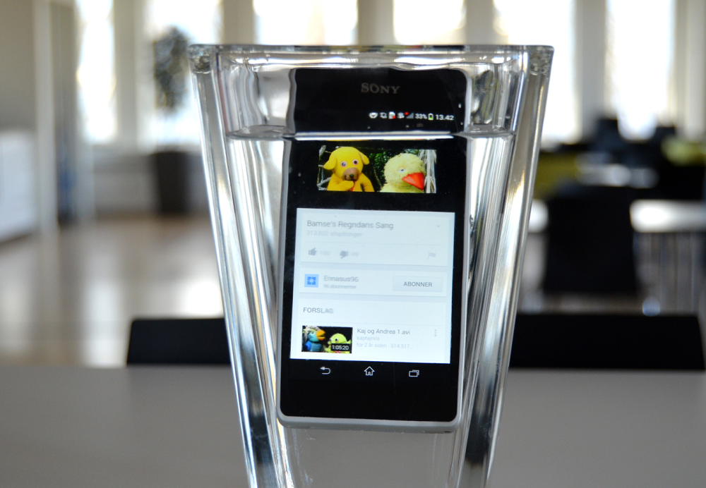 Den er også blevet parkeret i en kande med vand, mens YouTube-videoer blev afspillet. Også her klarede den det våde element uden problemer.