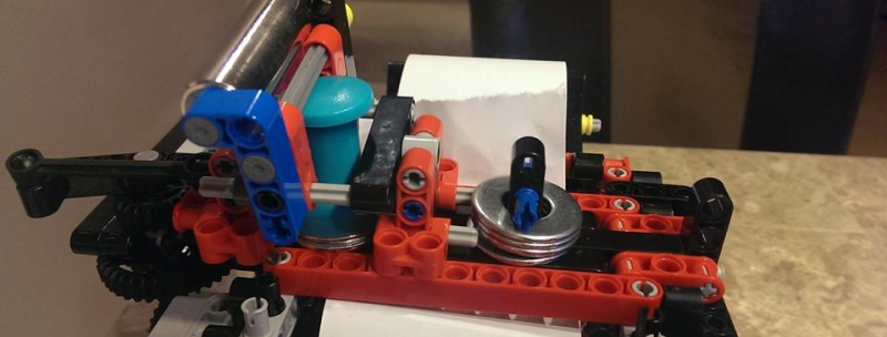 Den noget alternative printer bygget af Lego-klodser og -mekanik er stadig på prototype-stadiet.