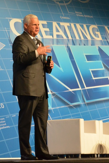 Joe Tucci, CEO i EMC, var også på scenen for at fortælle om, hvordan cloud computing, nye netværks-teknologier og nye forbruger-teknologier, eksempelvis wearables, ændrer mange ting for industrien.