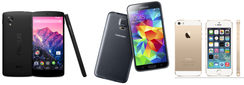Men hvad er forskellige og ligheder egentlig mellem Samsung Galaxy S5, Google Nexus 5 og Apple iPhone 5s?