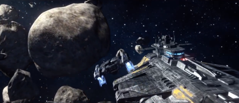 Pludselig sætter en eksplosion de ton-tunge sten i bevægelse, hvilket kan betyde den rene død, hvis de rammer moderskibet. Rumskibet overlever kun, fordi Cyrus heltemodigt og mirakuløst lægger sit rumskib imellem en kæmpeasteroide og moderskibet, og han dør... næsten.