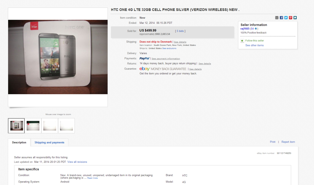 Det bizarre forløb omkring den nye HTC-mobil bliver ikke mindre mærkværdigt af, at et eksemplar af telefonen allerede har været til salg på auktionssiden eBay.
