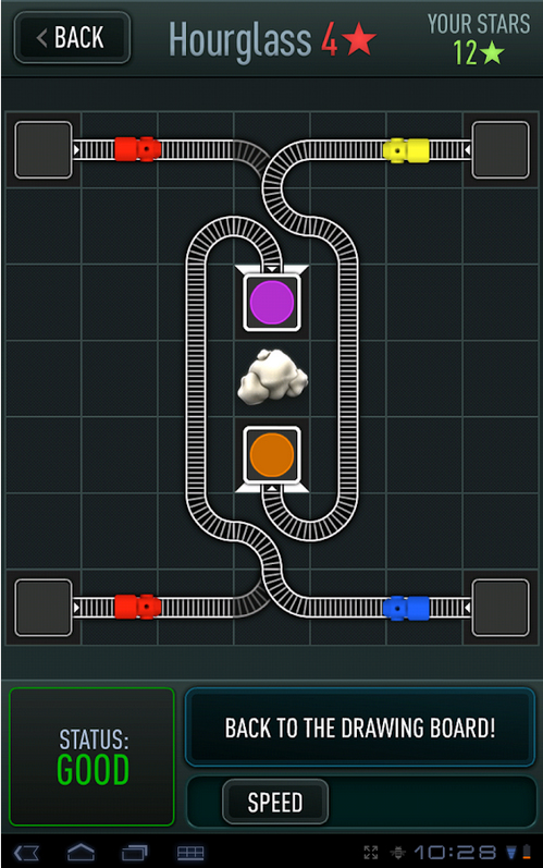 Men efterhånden som bane på bane gennemføres, bliver opgaverne stadig mere komplekse at løse. For nu er lokomotiverne nødt til at krydse hinanden for at danne orange eller lilla, og de skal enten splittes i to eller flettes sammen, for at det rigtige antal kører i garage de rigtige steder, og så skal der også lige holdes styr på, at skiftesporene sender lokomotiverne i den rigtige retning.