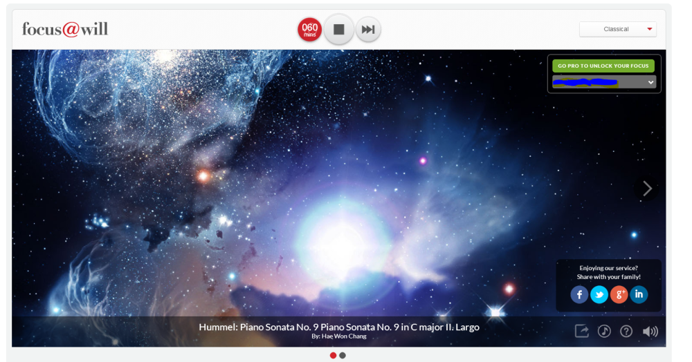Focus@Will bruger forskningen bag musikkens påvirkning af hjernen og laver samlede playlister, som man kan høre gratis i op til 60 minutter ad gangen.