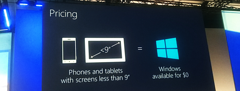 Fremover kan producenter af hardware, hvor skærmen ikke overstiger en størrelse på ni tommer, nemlig ganske gratis benytte sig af Windows.