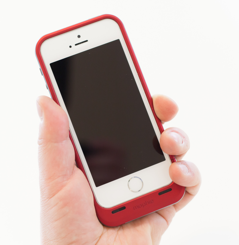 Vores Mophie test-model var i en særlig rød Special Edition, men coveret kommer også i hvid og sort, så den matcher din telefons farver.