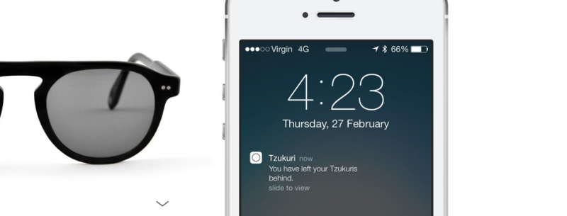 Hvis du bevæger dig mere end fem meter væk fra dine Tzukuris-solbriller, vil du nemlig får en automatisk besked via en app på din telefon.