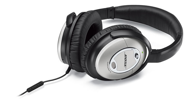 De findes i et utal af varianter, men Bose QuietComfort 15 er et godt bud. Den konstante buldren fra et fly bliver reduceret til en svag brummen, og man kan uden problemer høre selv de mest skrøbelige sange uden at blive forstyrret.