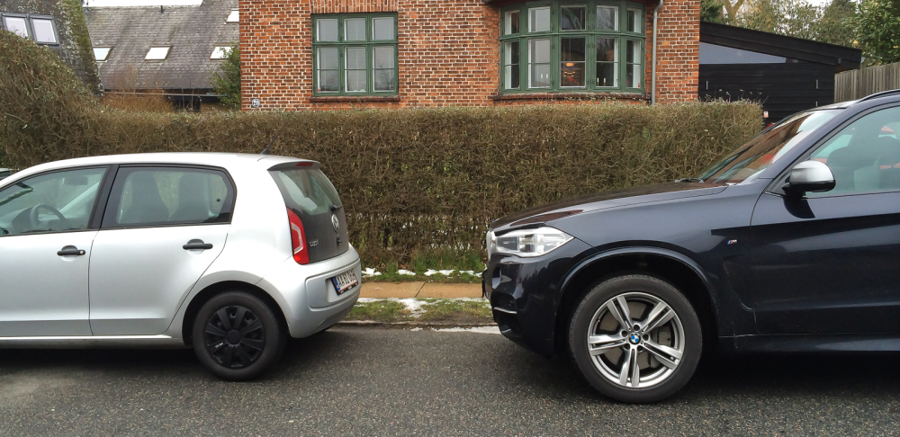 En kollega sætter mig af foran BMW-forhandleren Jan Nygaard. Han venter ikke, men suser afsted i sin Skoda Citigo. Nok uvillig til at konfrontere den bil, som han ved venter på mig et sted på den BMW-fyldte parkeringsplads. En bil der koster det samme som 21 basis-modeller af VW Up-klonen, Citigo.