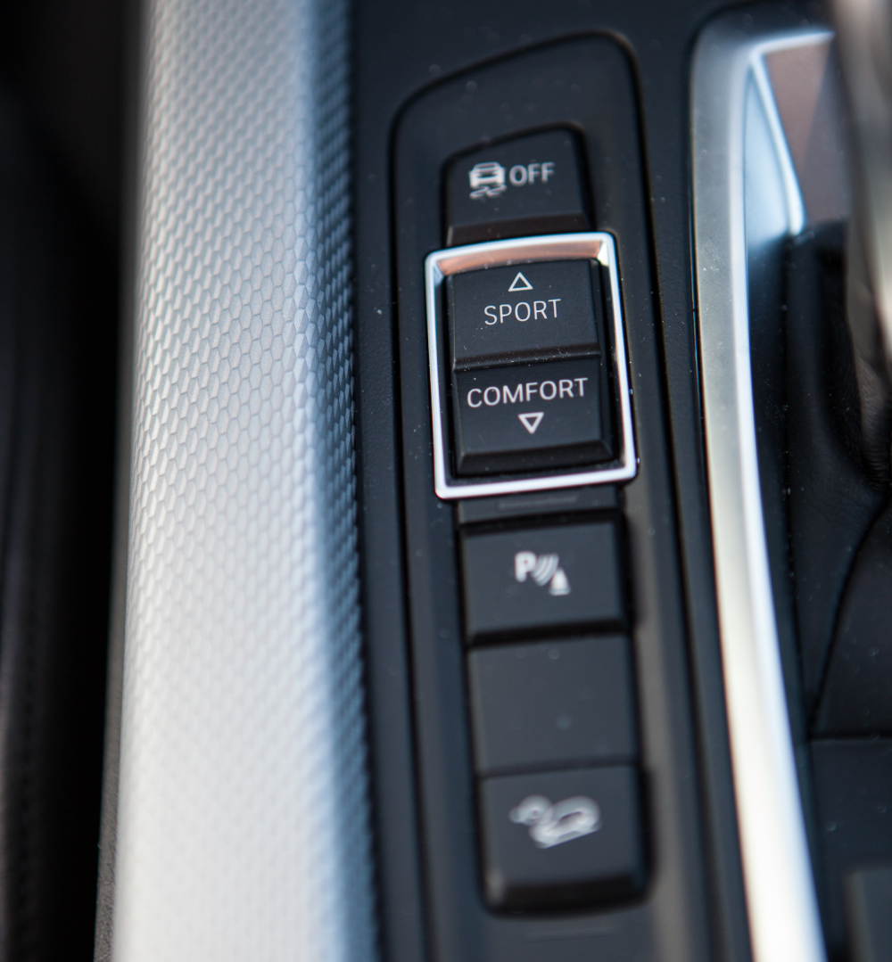 På trods af dens absurde bundtræk skal man virkelig give den gas i sving, før hjulene bare skrider en lille smule. Det skyldes både de brede 19 tommer vinterdæk som vores test-udgave er udstyret med, men også at BMW's xDrive lynhurtigt flytter kraften mellem alle fire hjul for at sikre bedst muligt vejgreb. Det sker heldigvis helt automatisk og uden behov for joystick eller de mange knapper.