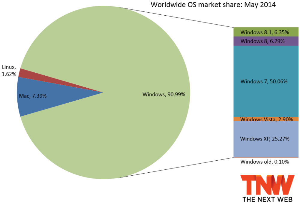 Det billede har betydet, at Windows 8.1 nu for første gang har en større markedsandel end Windows 8 på verdensplan.