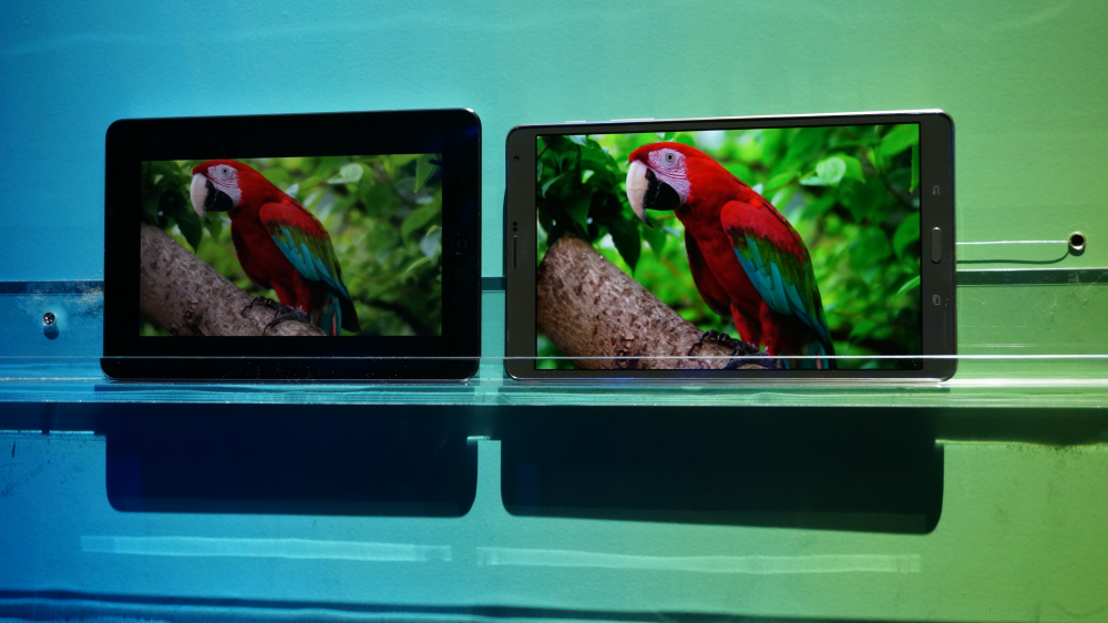 Samsung havde været friske nok - nogen vil nok kalde det dumdristigt - til at sætte en iPad Mini Retina op ved siden af en af de nye tablets for at vise forskellen. Apples Retina-skærme på iPads har længe sammen med Nexus 7's skærme været en form for benchmark for, hvad der er de bedste skærme - både hvad angår farve og klarhed. Men ved sammenligningen mellem iPad Mini Retina og den nye Tab S 8,4 er der ingen tvivl: Samsungs nye vidunderbarn er uhyggelig skarp.