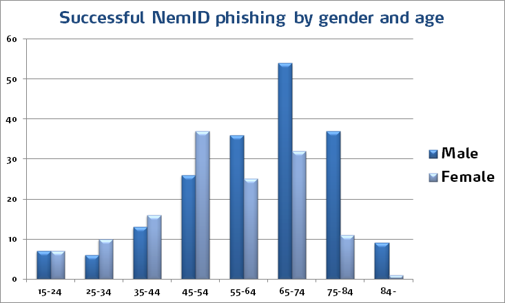 Ligeledes har sikkerhedsfolkene samlet tallene i en statistik, der fortæller om, hvem der falder for de it-kriminelles fiskerier.