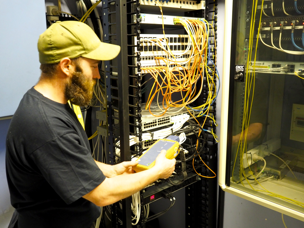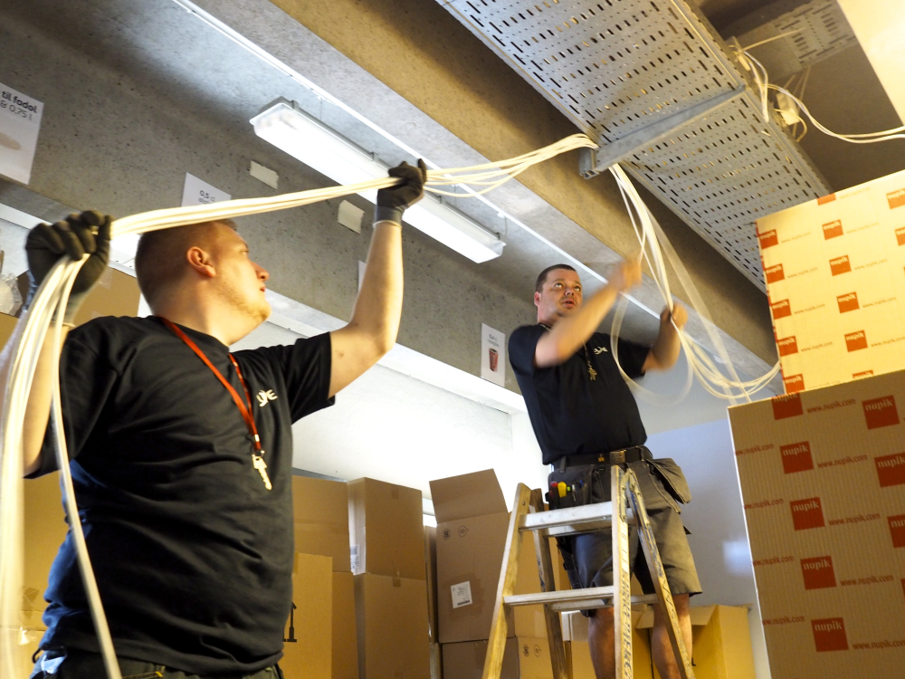 "Vi har redundans på fiberen ind og to core controllere, hvor den ene kan tage over, hvis den anden dør. Og vi har redundans på fiberen imellem switchene, så jeg vil mene, at vi er sikret imod alt andet end lige strømudfald."