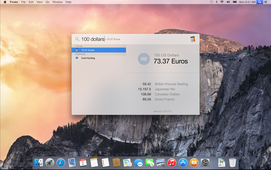 "Med et nyt søgevindue og søgeresultater, du kan scrolle igennem, gør Spotlight det nemmere end nogensinde at finde tingene på din Mac. Og nu finder det også oplysninger fra Wikipedia, Bing, Kort og andre kilder," lyder det i Apples præsentation af Yosemite.