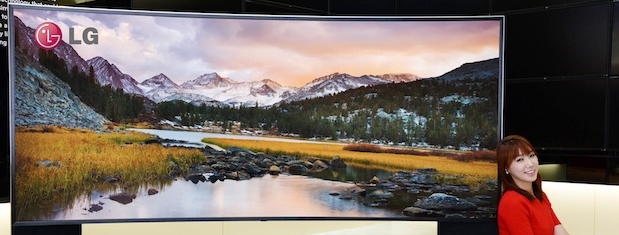 Et 105 tommer buet tv til en pris på 120 millioner koreanske won - eller 650.000 skattebelagte kroner. Prisen er naturligvis uden dansk moms og andre eventuelle afgifter.