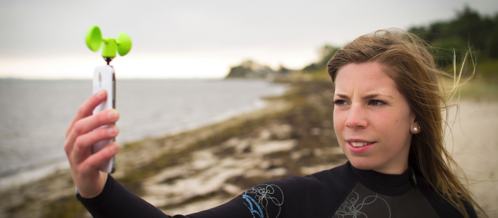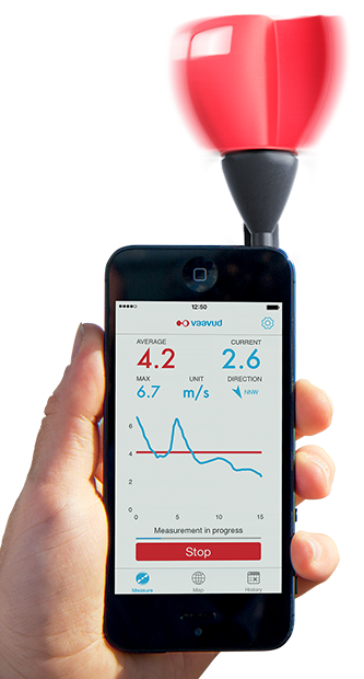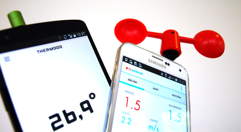 Et andet eksempel på vores store lyst til at måle på omgivelserne er vindmåleren fra Vaavud, som er lige så pæredansk som Thermodo. Den første udgave blev ligesom Thermodo finansieret på Kickstarter i foråret 2013 og er siden solgt i 30.000 eksemplarer til over 100 lande. Nu er Vaavud midt i finansieringen af en ny version af vindmåleren på Kickstarter, som også kan måle vindretning. Efter 18 dage er målet allerede nået - og lidt til - så succesen er i hus